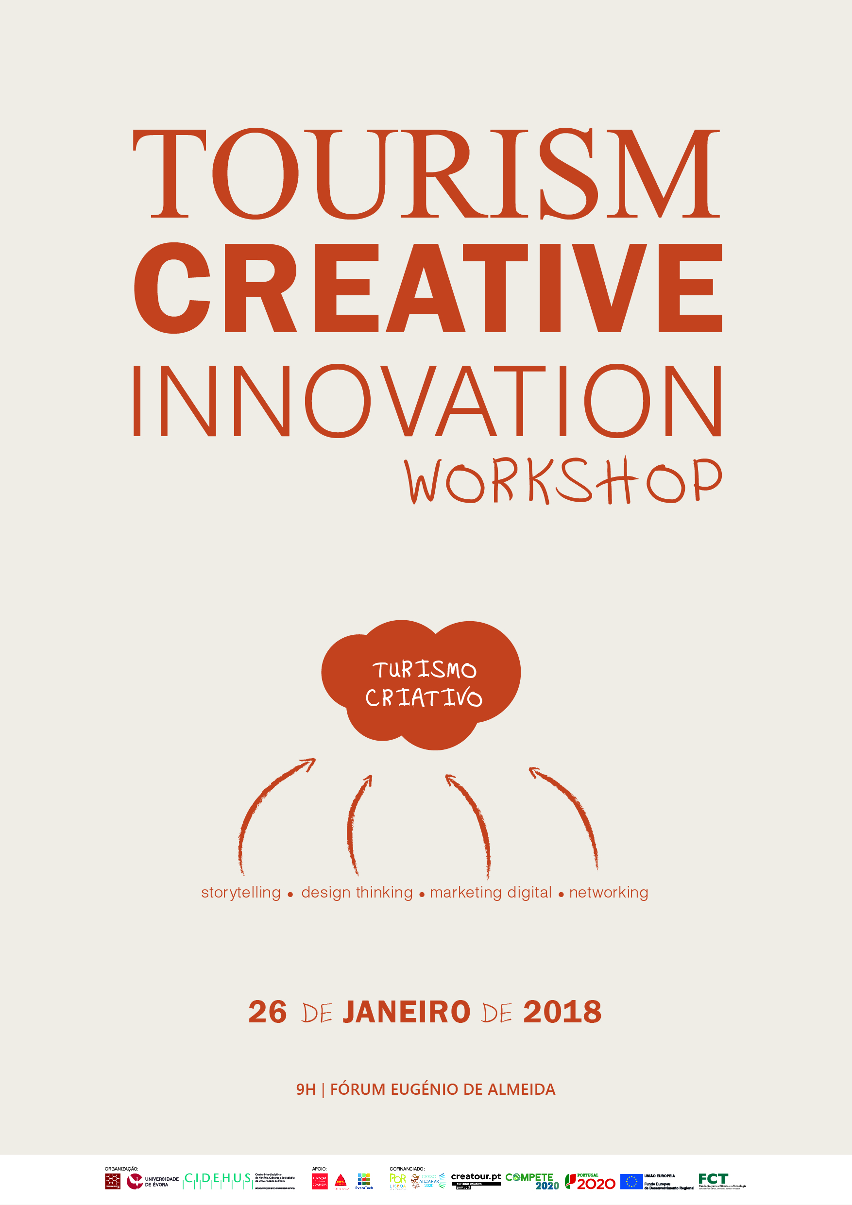 Decorrerá no dia 26 de Janeiro de 2018, o Creative Tourism Innovation Workshop, promovido pelo Tourism Creative Lab do CIDEHUS